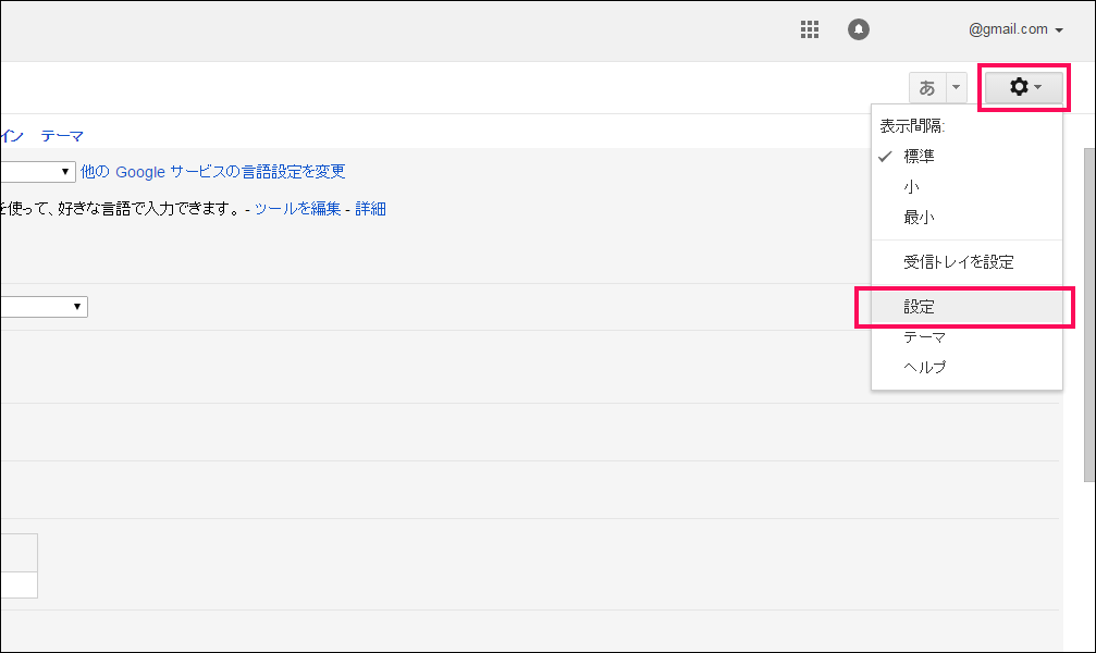 【3】右上の歯車マークをクリックし、「設定」をクリックします。