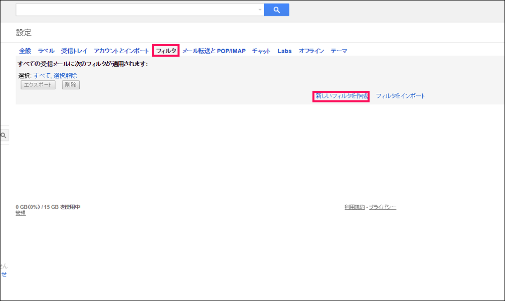【7】画像のようにフィルタが作成できていれば設定は完了です。