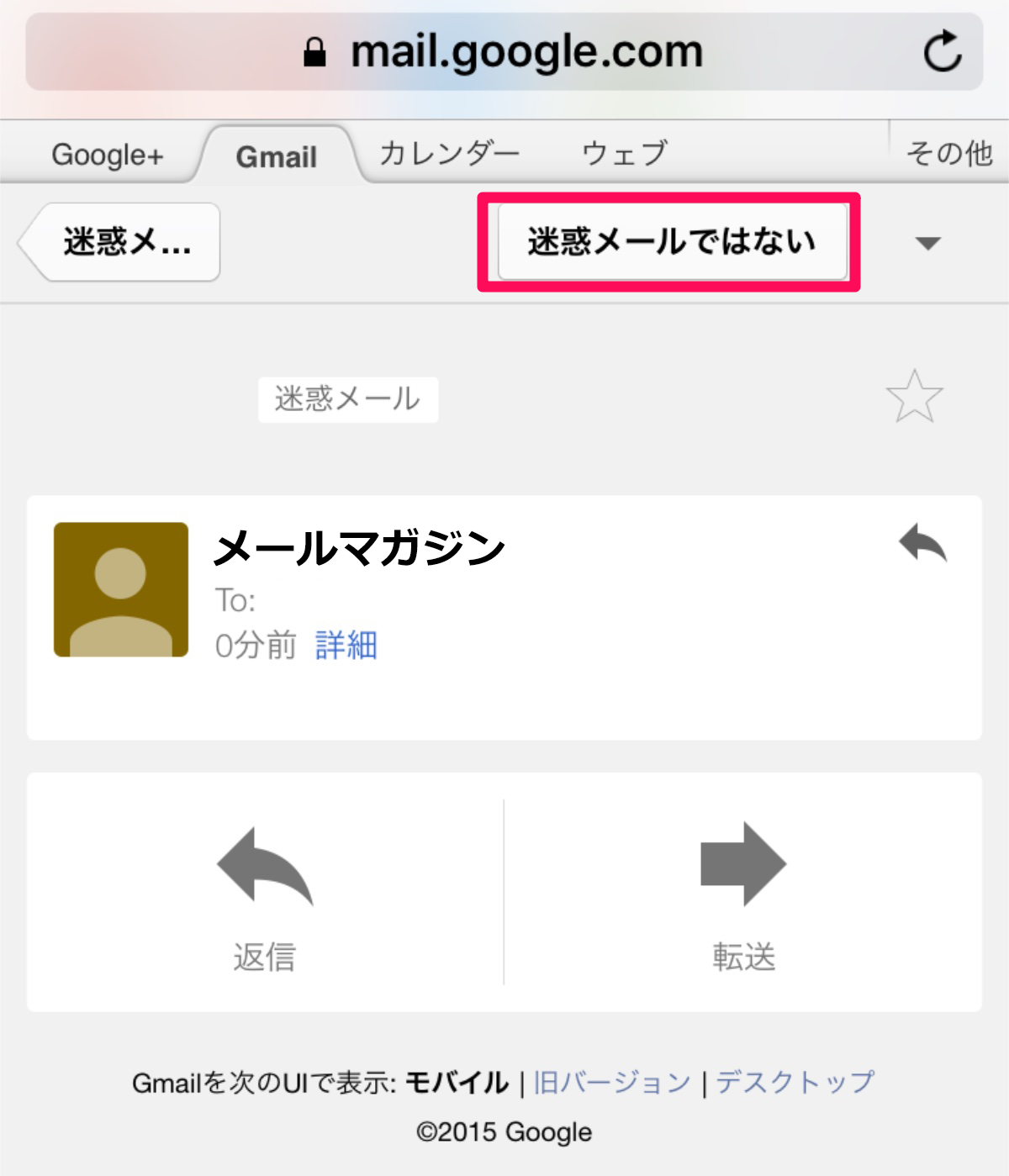 スマホ版Gmailで「迷惑メールではない」報告をする