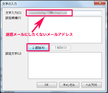 【8】「設定文字」にメールアドレスが表示されたら、OKボタンをクリックします。