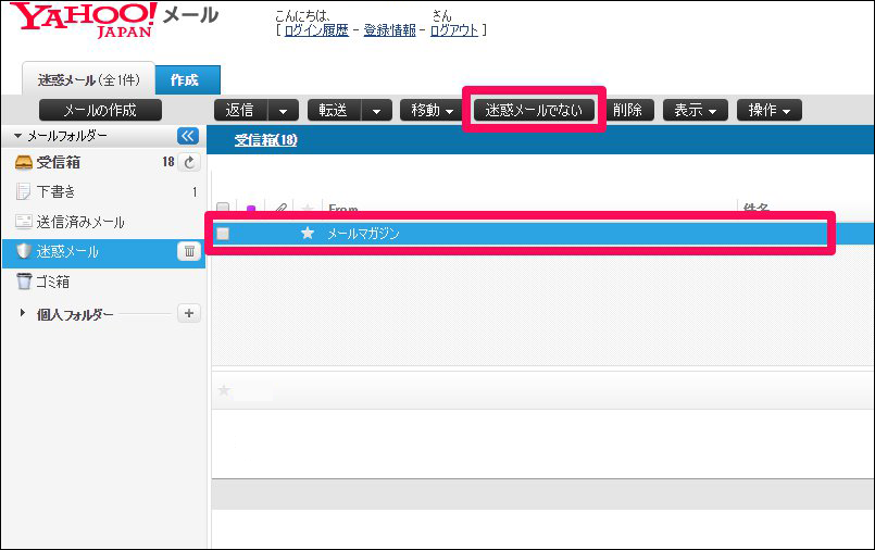【2】迷惑メールに入ってしまったメール(迷惑メールフォルダーに振り分けたくないメール)が受信トレイに入りました。