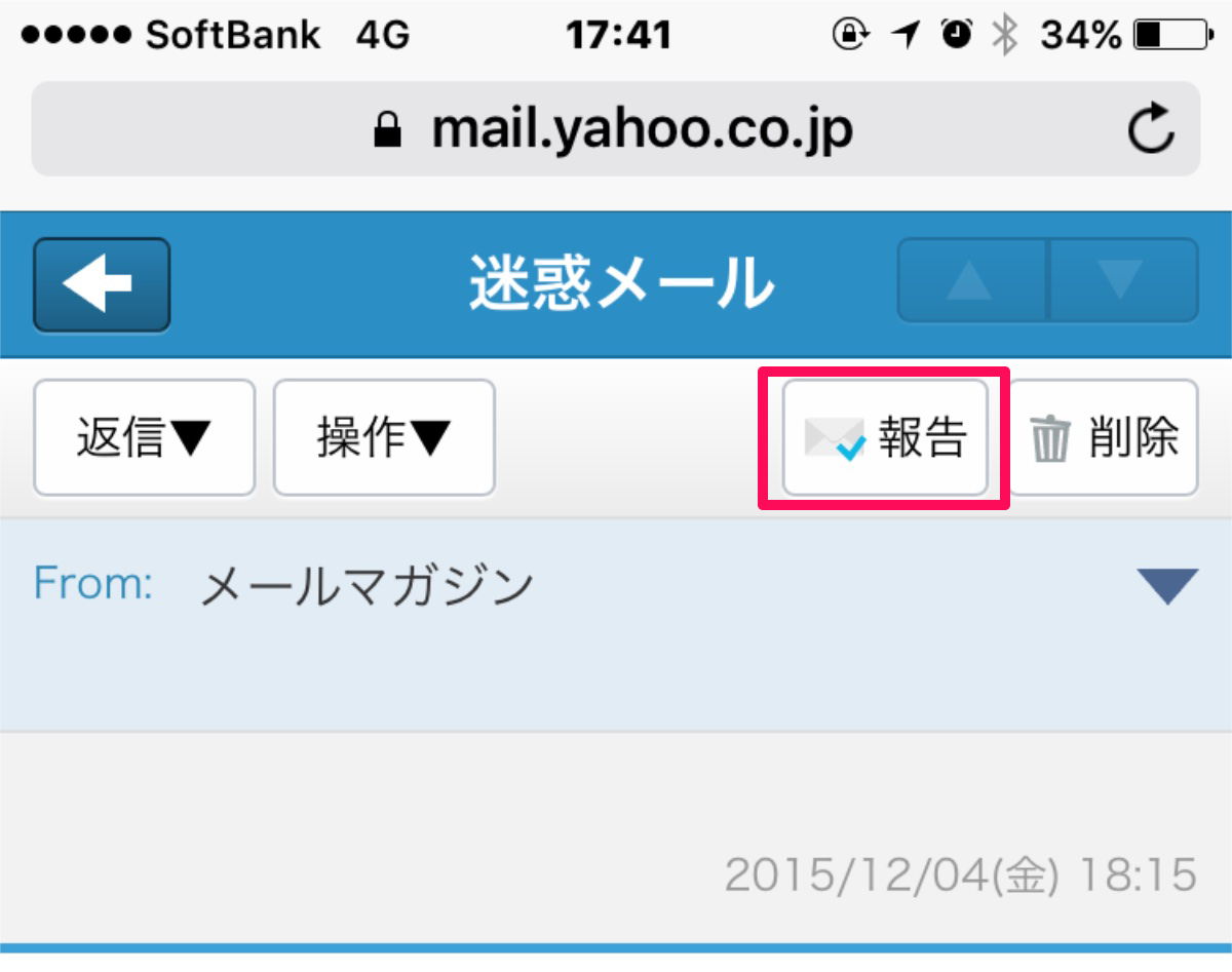 スマホ版Yahoo!メールで「迷惑メールではない」報告をする